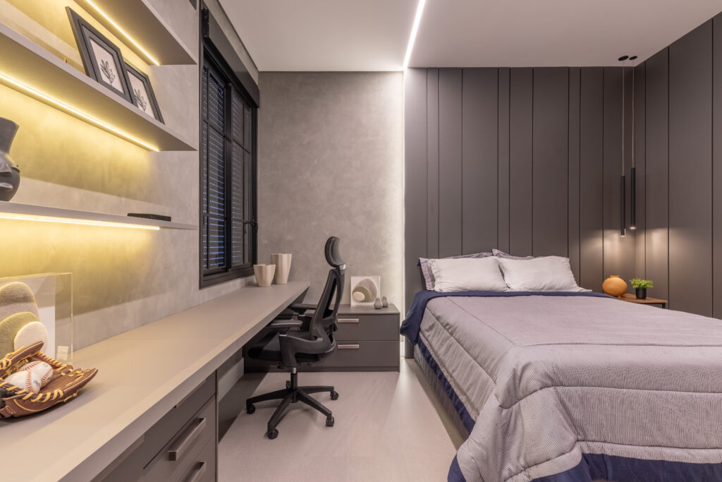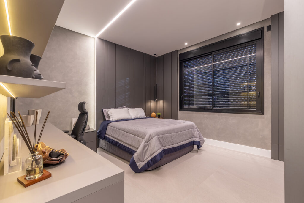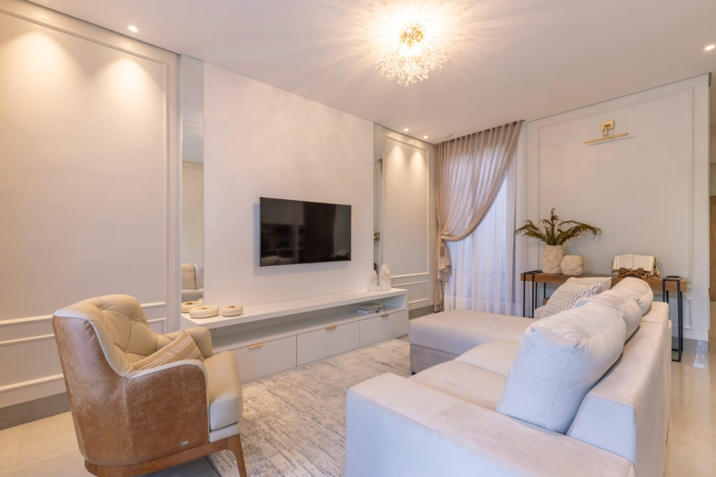 Cada ambiente traduz o equilíbrio entre sofisticação e acolhimento, revelando um projeto que valoriza a luz natural, a integração dos espaços e o diálogo entre cores, texturas e materiais.