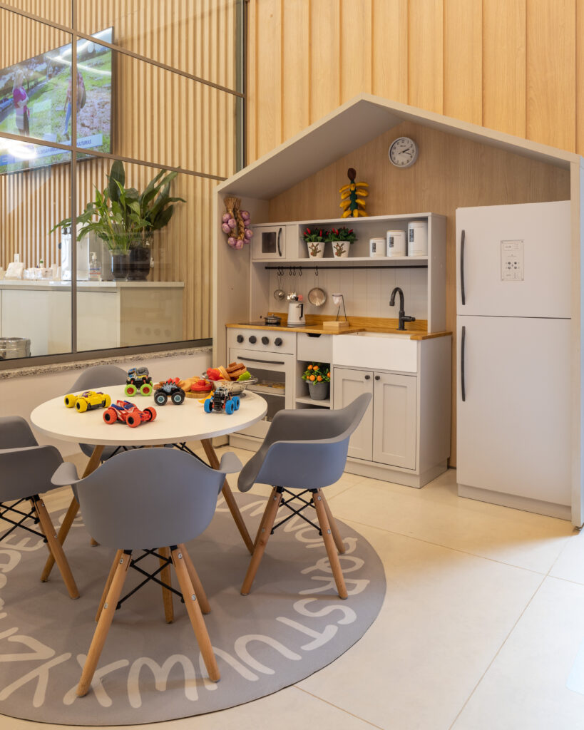 Cada detalhe, do mobiliário orgânico ao espaço lúdico infantil, foi pensado para transformar a experiência da saúde em algo humano, gentil e inspirador.
