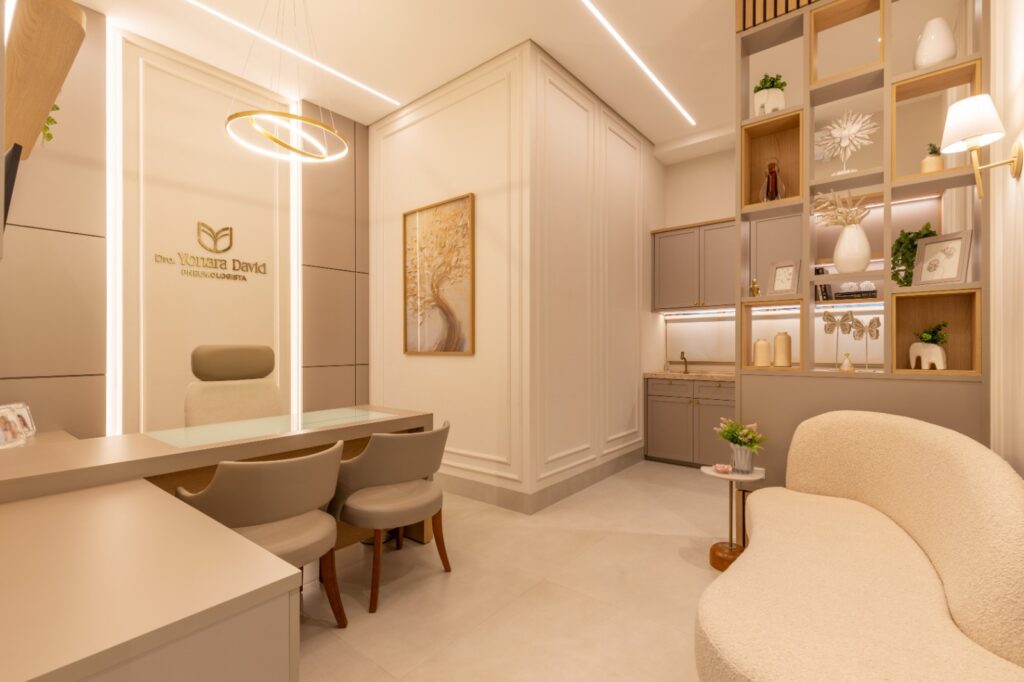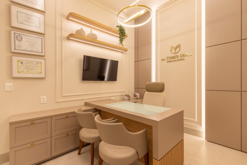 Mais do que um ambiente clínico, este consultório se transforma em um espaço de encontro humano, onde o paciente encontra não apenas técnica e precisão, mas também empatia e cuidado. A leveza presente em cada canto traduz a missão de transformar consultas em experiências de acolhimento e de renovar a esperança — afinal, respirar melhor é viver melhor.