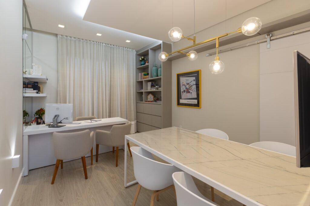 Nosso escritório é mais do que um ponto de referência: ele é a materialização de um propósito. Pensado para acolher, inspirar e aproximar pessoas, cada ambiente foi projetado com atenção aos detalhes para refletir a essência do nosso trabalho. Aqui, estética e funcionalidade se unem para criar uma atmosfera que transmite serenidade, confiança e sofisticação.