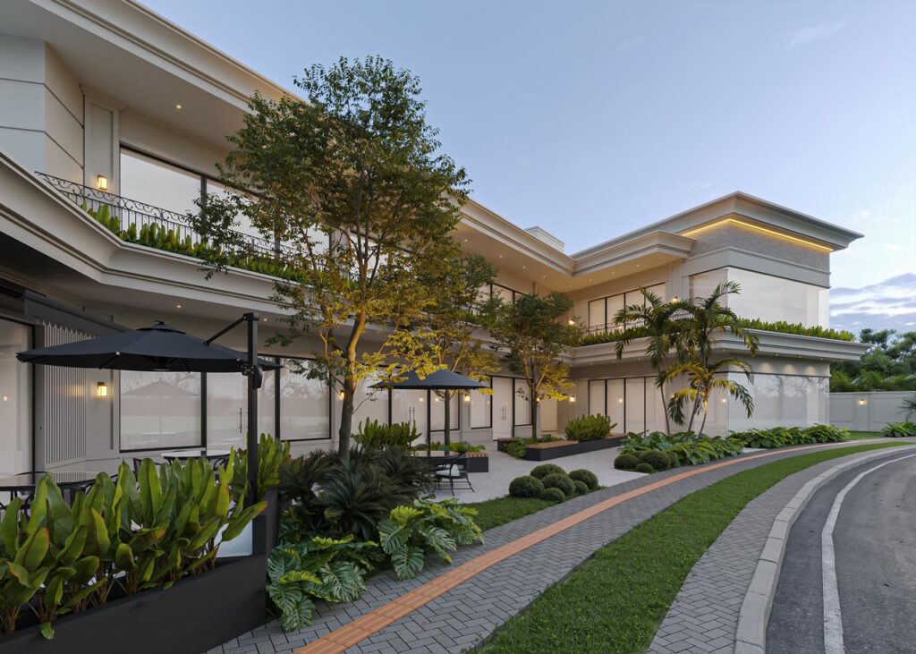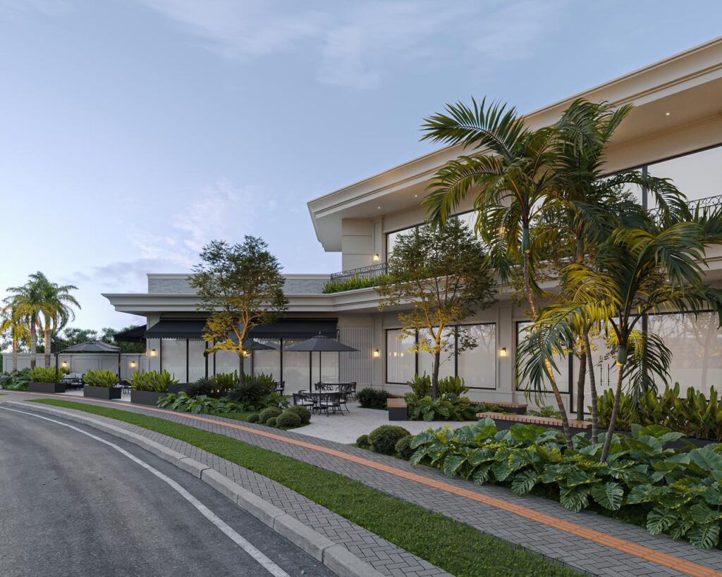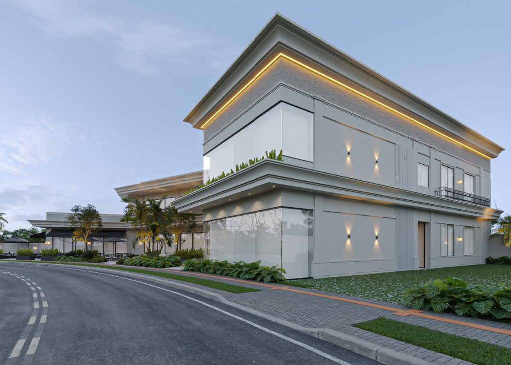 Erguido para ser um marco de sofisticação e funcionalidade, este edifício comercial une arquitetura contemporânea e elegância atemporal. A volumetria imponente, os traços retos e o equilíbrio entre cheios e vazios revelam uma construção que valoriza tanto a estética quanto a experiência do usuário.